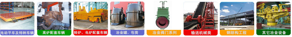 公司產(chǎn)品有ZT系列鐵水罐車、鋼包車、渣罐車、渣盤車、電動(dòng)平車、過跨車、鐵水稱量車、液壓傾翻車、廢鋼料籃車、中間罐車、修爐車、爐底車、鎳鐵礦熱爐料罐車、汽運(yùn)鐵水車以及各種鐵水罐(包)、鋼水包(罐)、渣罐、渣盤、中間罐、鋼包加蓋、龍門吊鉤、鋼包傾翻機(jī)、鋼包回轉(zhuǎn)臺等產(chǎn)品。